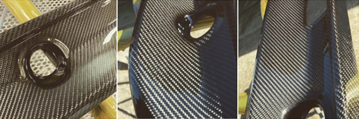 本物のカーボン(国産品・綾織・平織)を使用 し、車、バイクの内外装、鉄板やプラスチック、 テーブル等の木材に加工する事により、カーボンのみ で型から形成するのに比べ軽さや強度は劣りますが、 低コストで純正クオリティーを損なわずカーボン特有 の網目模様・深みを楽しめます。また、ワンオフ制作も承っております。
